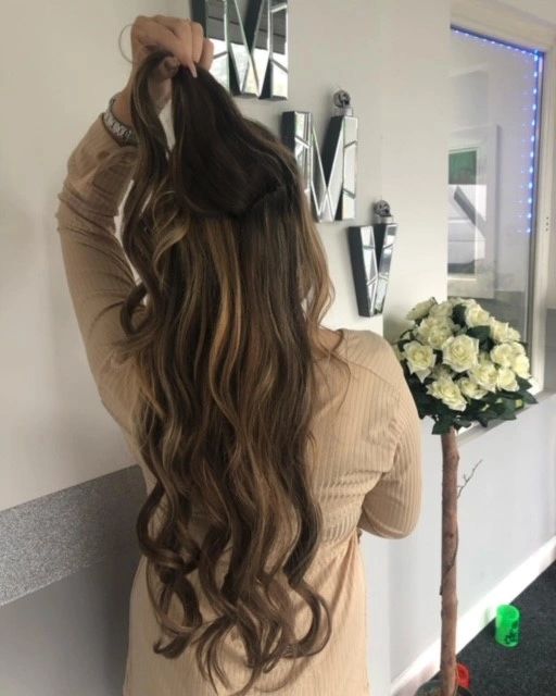 Nikki fits weft hair extensions with the Naked Weave method and I-tip hair extensions fitted with the Naked Locks method.